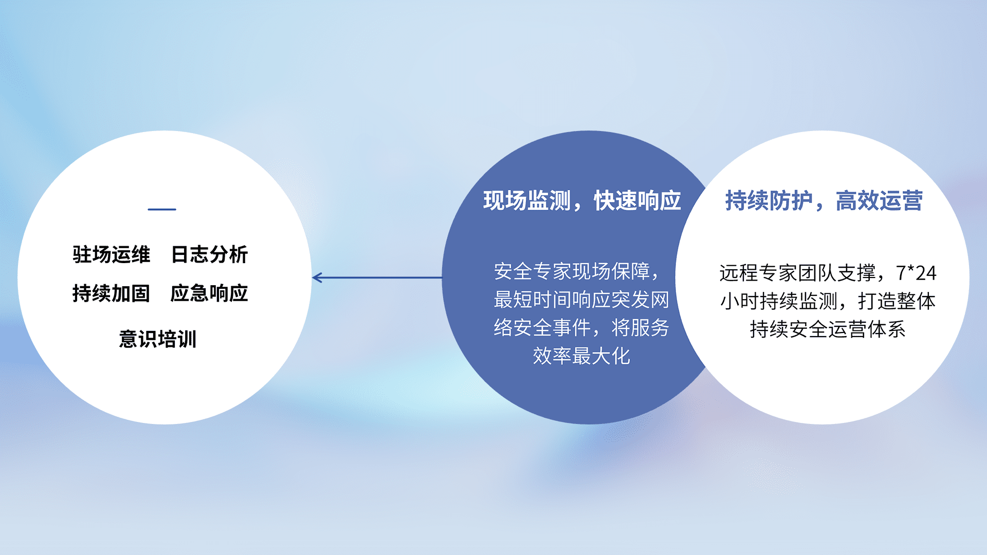7X24小时持续监测安全事件,保持安全策略有效性,降低资产脆弱性风险,,精准拦截黑客攻击,,,减少被黑客利用的机会,,,第一时间遏制,,降低损失。。。。